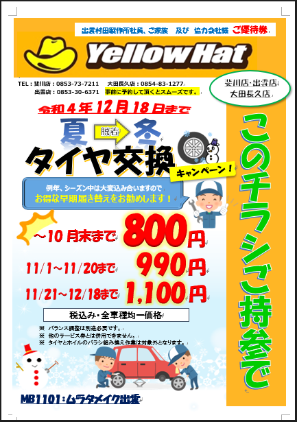イエローハット協賛 タイヤ交換のお知らせ(2022/10/17~12/18))